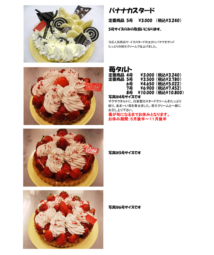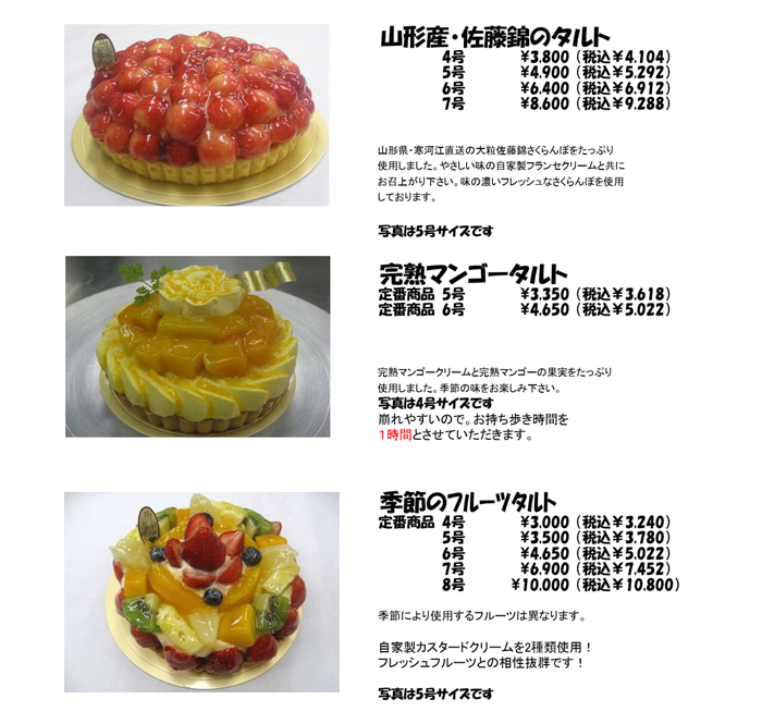 タルト、チーズケーキ(フロマージュクリュ以外)は側面に書けませんので変わります。
