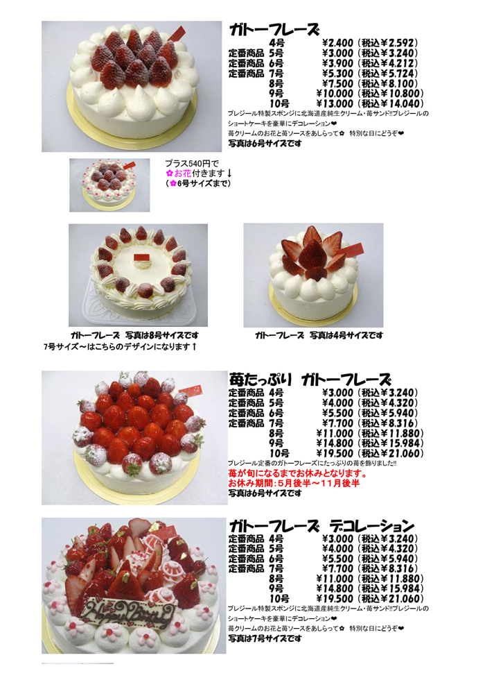 | ポケモン、機関車トーマス | ガトーフレーズ5号のみ | 4,630円(税抜き) | 5,000円(税込) |